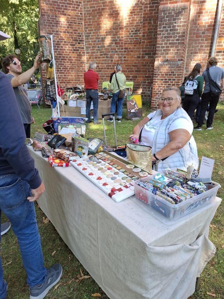 Statt einer kleinen Standgebühr nahmen wir auch einen Kuchen entgegen und sorgten so am Kaffee- und Kuchenstand für ein abwechslungsreiches Angebot. Wer es deftiger mochte, konnte sich am Stand unseres Vereins mit Herzhaftem versorgen.