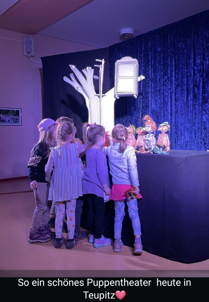 Am 7. März 2026 fand in der Aula der Teupitzer Grundschule eine liebevoll inszenierte Puppentheateraufführung statt, die besonders durch ihre einfühlsame Geschichte überzeugte. Bereits zum dritten Mal war Hendrik Andersen mit seinem Koffertheater bei uns zu Gast. In diesem Jahr trug das Stück den Namen „Trolle- eine Geschichte vom Größerwerden“ und ließ im Vorfeld nur erahnen, worum es gehen könnte. Die kleinen und großen Gäste wurden auf eine fantasievolle Welt voller lehrreicher Momente, Abenteuer und Humor entführt. Der kleine Lillebo war im Winterschlaf gewachsen und wollte nun seine kleine Welt erweitern. Als sein Trolle Papa von dem Frühlingssturm weggepustet wurde, konnte Lillebo unter Beweis stellen , dass man Ängste überwinden kann. Seine anfängliche Unsicherheit und Angst vor dem Wasser wurde behutsam und nachvollziehbar vermittelt. Die Bühne zeigte das Meer, das im Laufe der Geschichte immer mehr in den Fokus rückte. Dabei wurden die Themen Mut und Zusammenhalt auf kindgerechte Weise vermittelt. Die Dialoge und Handlungen waren lebendig und humorvoll sodass nicht nur die Kinder, sondern auch die Erwachsenen zum Lachen gebracht wurden. Die Bühne war liebevoll gestaltet und die detailreiche Ausarbeitung der Trollpuppen beeindruckte sehr. Am Ende konnten die Besucher mit den Trollen noch „auf Tuchfühlung“ gehen. Die Aufführung war ein voller Erfolg und zeigte, dass es Mut braucht, neue Dinge auszuprobieren und es völlig in Ordnung ist, Angst zu haben- solange man sich Schritt für Schritt ihr stellt. So kreativ und mitreißend kann Puppentheater sein. Ein gelungenes Erlebnis für die ganze Familie. (G. Schwenke)