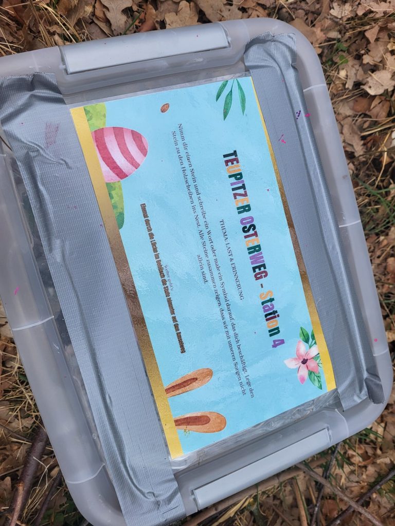 Besonders beliebt war der vorletzte Stopp des Osterweges, an welchem alle Gäste festhalten konnten, an welchem Ort sie sich besonders wohl oder geborgen fühlen – sei es mit Worten oder in Bildern. Die zahlreichen originellen Beiträge zeigten, wie offen und einfallsreich die Teilnehmenden waren.
